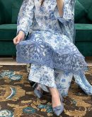 beautiful cutwork embroidered work kurta with print lawn dupatta & trousers