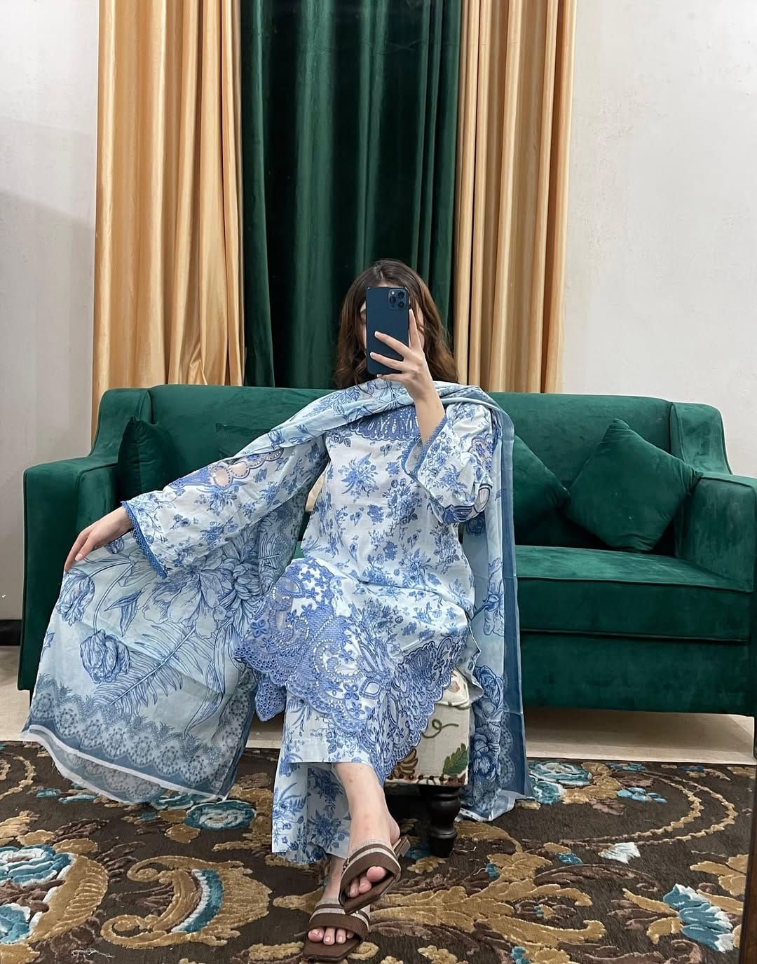 beautiful cutwork embroidered work kurta with print lawn dupatta & trousers